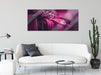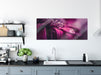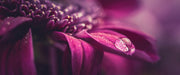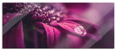 Nahaufnahme Tropfen auf lila Blume, Glasbild Panorama