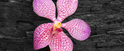 Orchideenblüte auf Rinde, Glasbild Panorama