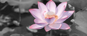 Rosa blühender Lotus Nahaufnahme B&W Detail, Glasbild Panorama