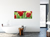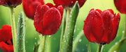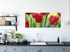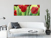 Rote Tulpen mit Tropfen bedeckt, Glasbild Panorama