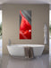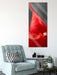 roter Tropfen auf Rosenblüte, Glasbild Panorama