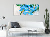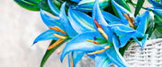 schöne blaue Blumen im Körbchen, Glasbild Panorama