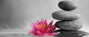Seerosenblüte vor Zen Steinen, Glasbild Panorama