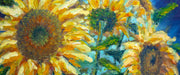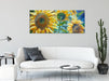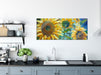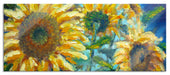 Sonnenblumen vor blauem Hintergrund, Glasbild Panorama