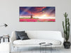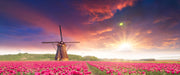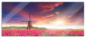Tulpenfeld mit Mühle bei Sonnenuntergang, Glasbild Panorama