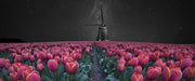 Tulpenfeld mit Windmühle bei Nacht B&W Detail, Glasbild Panorama