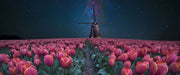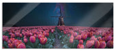 Tulpenfeld mit Windmühle bei Nacht, Glasbild Panorama