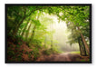 Sonnenstrahlen Waldweg, Poster mit Bilderrahmen