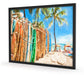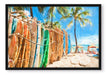 bunter Surfboards am Strand, Poster mit Bilderrahmen
