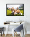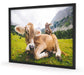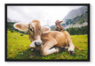 Almkuh in den Bergen, Poster mit Bilderrahmen