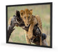 Junger Löwe in der Natur, Poster mit Bilderrahmen