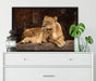 Löwe mit Löwenjungen, Poster mit Bilderrahmen