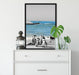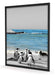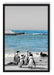 lustige Pinguine am Strand, Poster mit Bilderrahmen