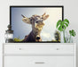 Lustiges Portrait einer Kuh, Poster mit Bilderrahmen