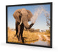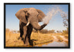 schöner Elefant spritzt mit Wasser, Poster mit Bilderrahmen