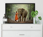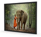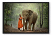 wunderschöner Elefant mit Mönch, Poster mit Bilderrahmen
