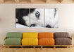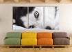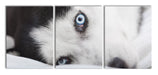 Husky mit Eisblauen Augen im Bett, XXL Leinwandbild als 3 Teiler