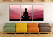 Meditierender Mensch in den Bergen, XXL Leinwandbild als 3 Teiler