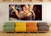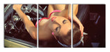 Rockabilly Frau im Auto, XXL Leinwandbild als 3 Teiler