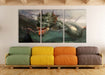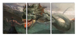 Drache kämpft gegen Krieger, XXL Leinwandbild als 3 Teiler
