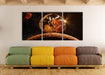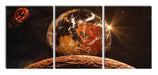 Rote Planeten in der Galaxie, XXL Leinwandbild als 3 Teiler