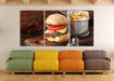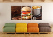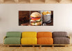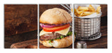 Cheesburger mit Pommes, XXL Leinwandbild als 3 Teiler