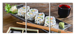 Delikate Inside Out Sushi Rollen, XXL Leinwandbild als 3 Teiler