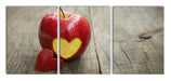 Herzschnitzerei in Apfel, XXL Leinwandbild als 3 Teiler
