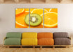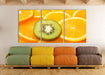 Kiwi verirrt in Orangenscheiben, XXL Leinwandbild als 3 Teiler