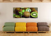 Kiwis auf Holztisch, XXL Leinwandbild als 3 Teiler