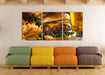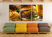Saftiger Chili Cheese Burger, XXL Leinwandbild als 3 Teiler