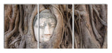 Buddha Kopf im Baum, XXL Leinwandbild als 3 Teiler
