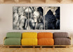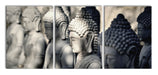 Buddha-Statuen in einer Reihe, XXL Leinwandbild als 3 Teiler