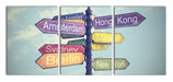 Städte Wegweiser, XXL Leinwandbild als 3 Teiler