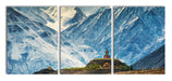 Tempel an Bergen in Tibet, XXL Leinwandbild als 3 Teiler