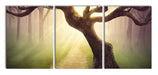 Baum am Waldweg, XXL Leinwandbild als 3 Teiler