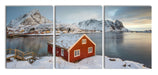 Fischerhaus Lofoten, XXL Leinwandbild als 3 Teiler