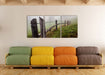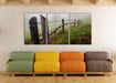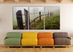 Holzzaun auf Wiese, XXL Leinwandbild als 3 Teiler