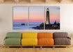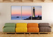 Leuchtturm in Abenddämmerung, XXL Leinwandbild als 3 Teiler