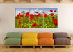 Mohnwiese, XXL Leinwandbild als 3 Teiler