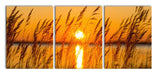 Sonne zwischen Gräsern, XXL Leinwandbild als 3 Teiler