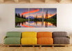 Sonnenaufgang Berglandschaft, XXL Leinwandbild als 3 Teiler