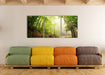 Sonnenstrahlen Waldweg, XXL Leinwandbild als 3 Teiler