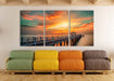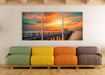 Steg ins Meer bei Sonnenuntergang, XXL Leinwandbild als 3 Teiler