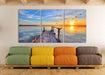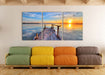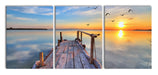 Steg mit Möwen bei Sonnenuntergang, XXL Leinwandbild als 3 Teiler