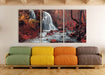 Wasserfall im Wald, XXL Leinwandbild als 3 Teiler