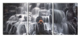 Yoga am Wasserfall in Bali, XXL Leinwandbild als 3 Teiler