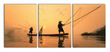 Fischer beim Angeln in Thailand, XXL Leinwandbild als 3 Teiler