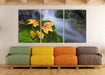 Bläter auf Moos an Bach, XXL Leinwandbild als 3 Teiler