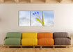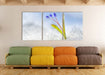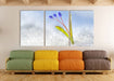 Blaue Knospen im Schnee, XXL Leinwandbild als 3 Teiler